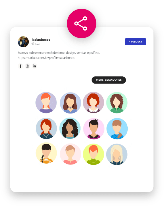 Compartilhe seu perfil e publicações preferidas em suas redes sociais e traga seus amigos para a Parlate.
