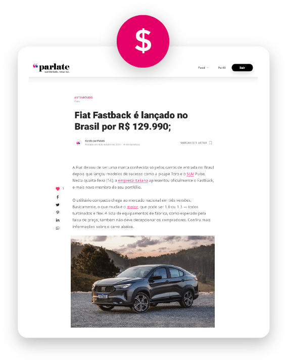 As publicações patrocinadas tem destaques dentro das páginas de conteúdo. Você pode vender seu serviço sem pagar nada à Parlate.